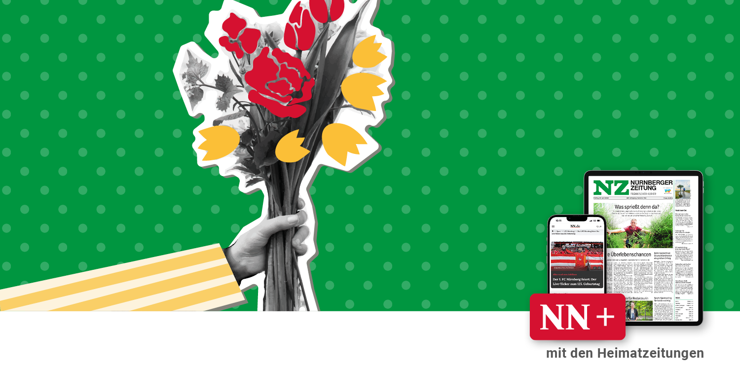 Zeit, um Danke zu sagen! Verschenken Sie 4 Wochen Lesefreude mit der Nürnberger Zeitung oder Nordbayerischen Zeitung für nur 14,90 € und erhalten Sie einen Fleurop- oder Thalia-Gutschein im Wert von 10 € dazu. Wir stellen dem Beschenkten das E-Paper mit aktuellen, stets kritisch hinterfragten Nachrichten aus Ihrer Region und der Welt zur Verfügung – jederzeit, überall und geräteunabhängig lesbar. Der Zugang endet automatisch. Jetzt das Geschenkangebot zum Mutter- oder Vatertag sichern!